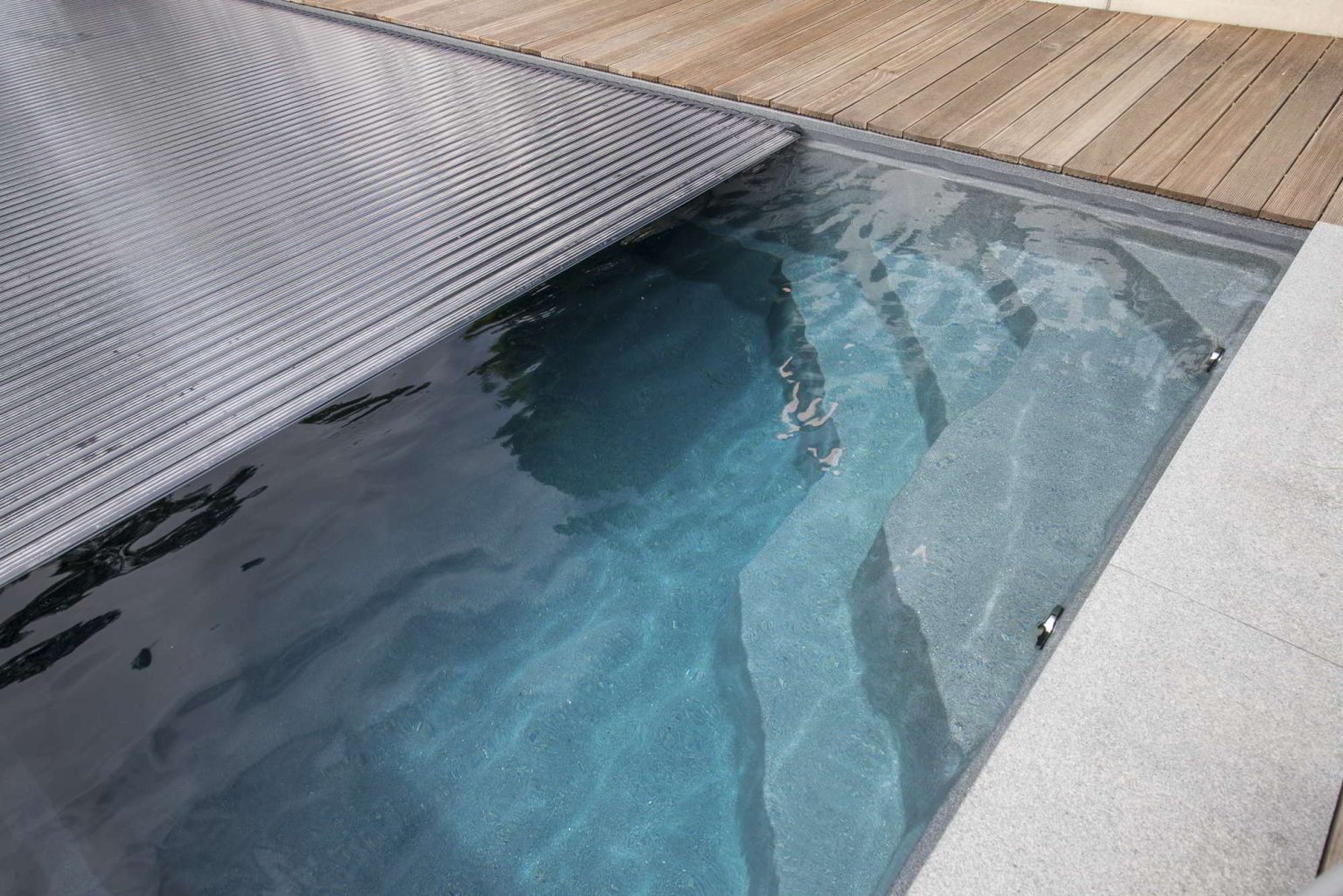 - A lépcsőkkel szemben lévő oldalra telepíthető egy COMPASS rolós medencefedés
