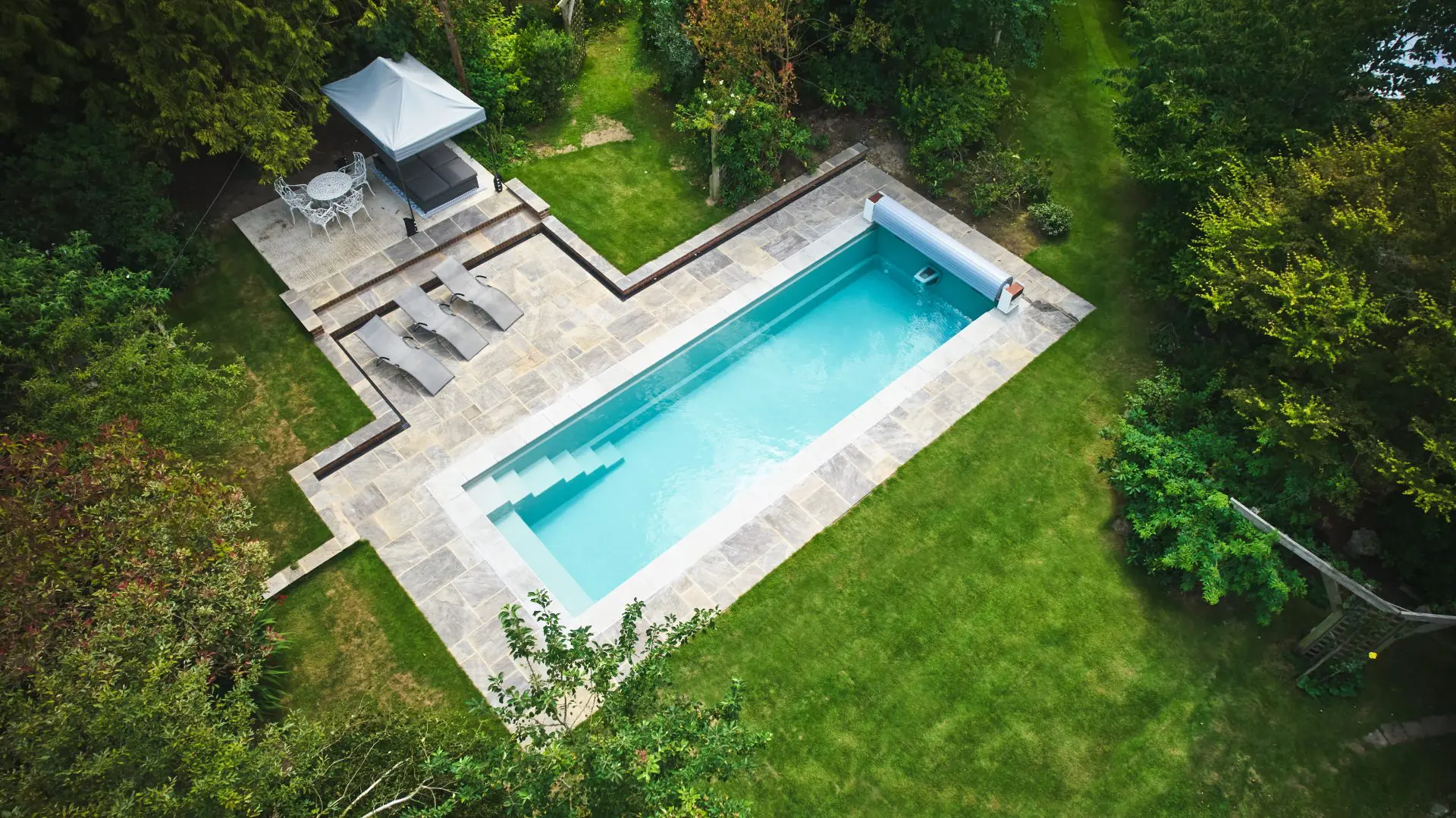 Egy kültéri Compass Pools medence telepítése pár percben bemutatva.
