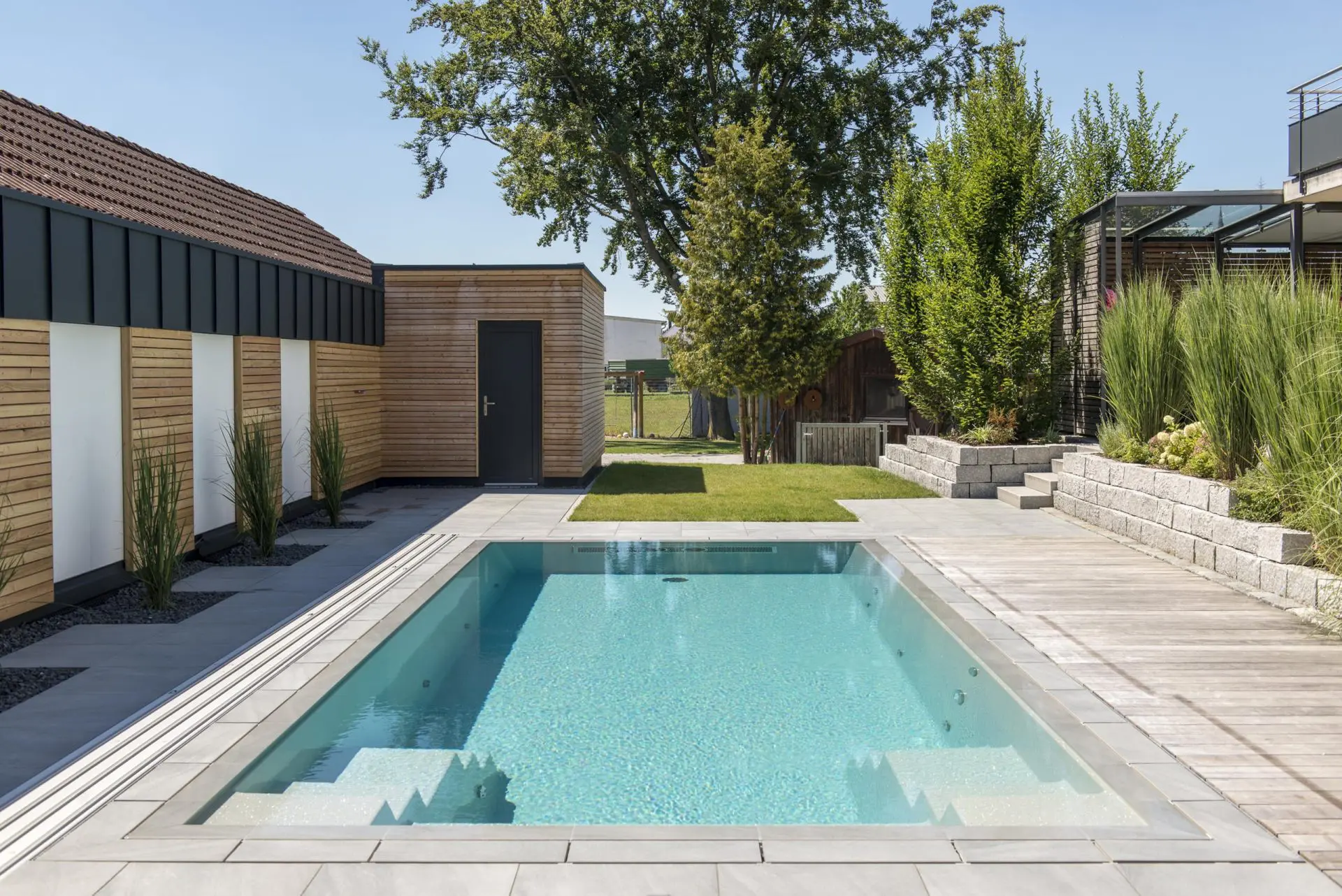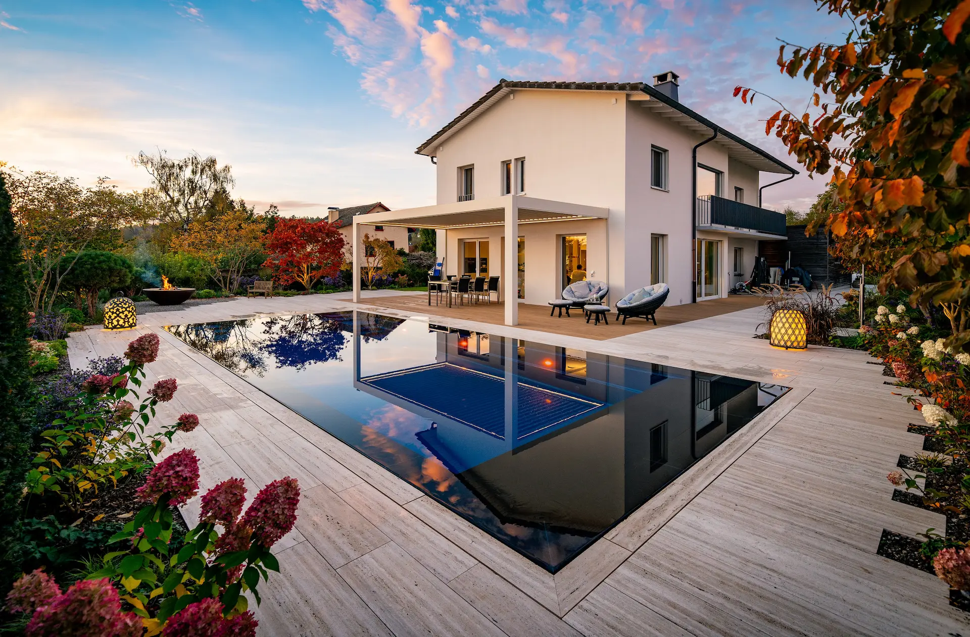 Az INFINITY80 medencetípus egy valódi exkluzív újdonság, amely páratlan esztétikai élményt nyújt, hiszen a vízfelület teljes mértékben összeolvad környezetével. A túlfolyócsatorna kőhatású megjelenése diszkréten, mégis elegánsan illeszkedik a kerti környezetbe, harmonikus képet alkotva. Opcionálisan ráccsal is felszerelhető.