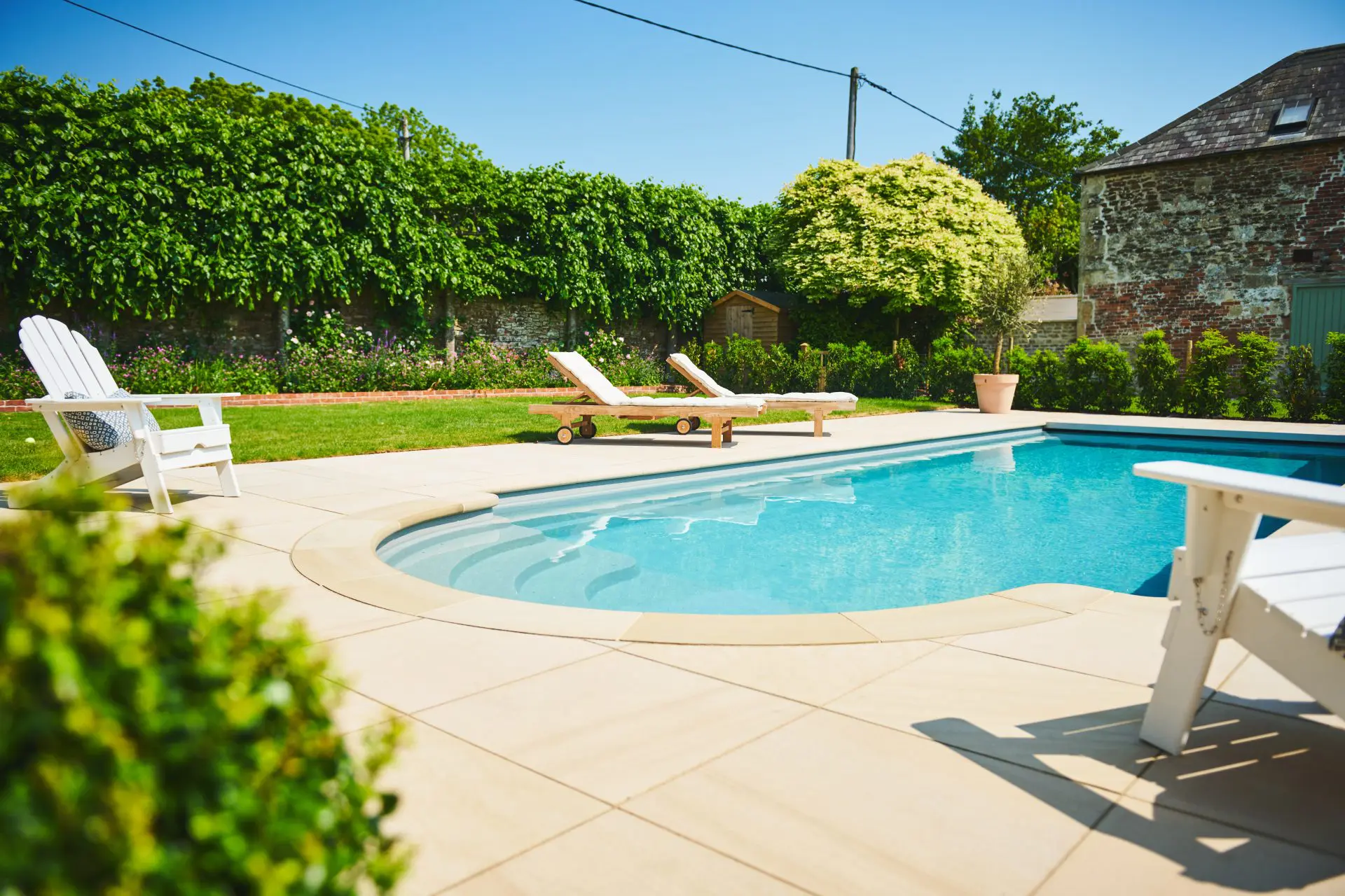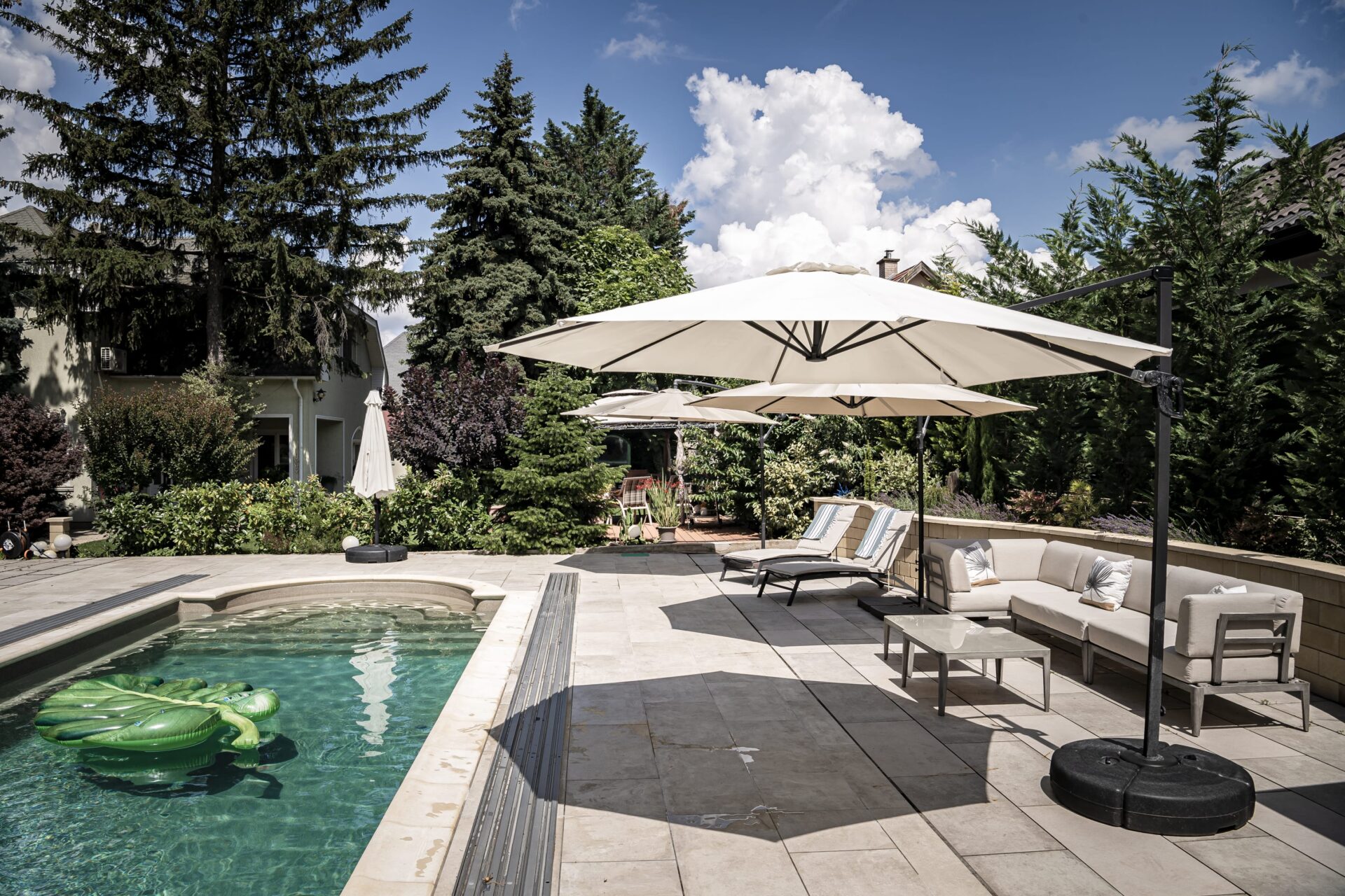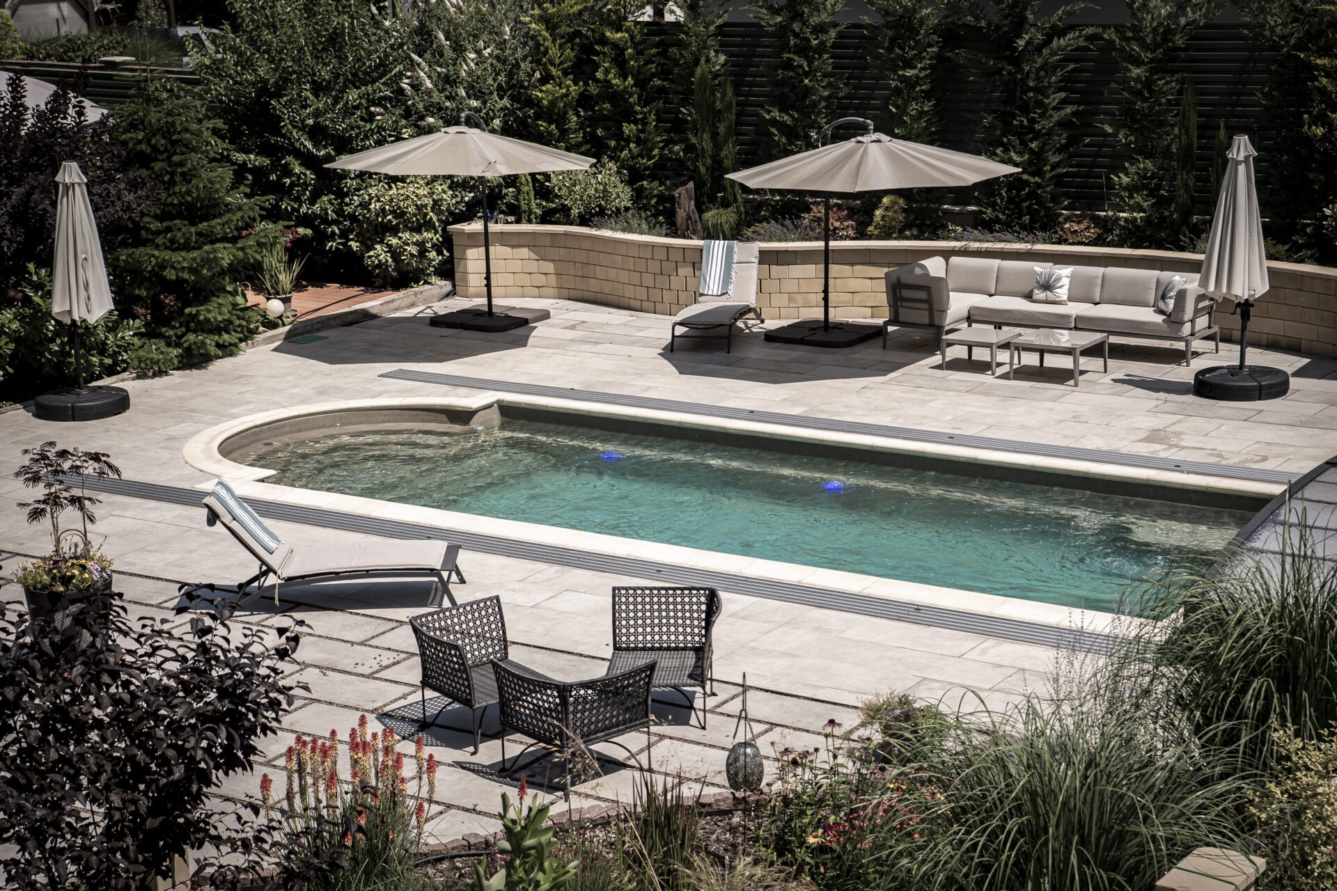 - Biztonsági vezetőperem a medence körül a takarási megoldáshoz, igényelhető rejtett rolóházas medencefedési megoldás