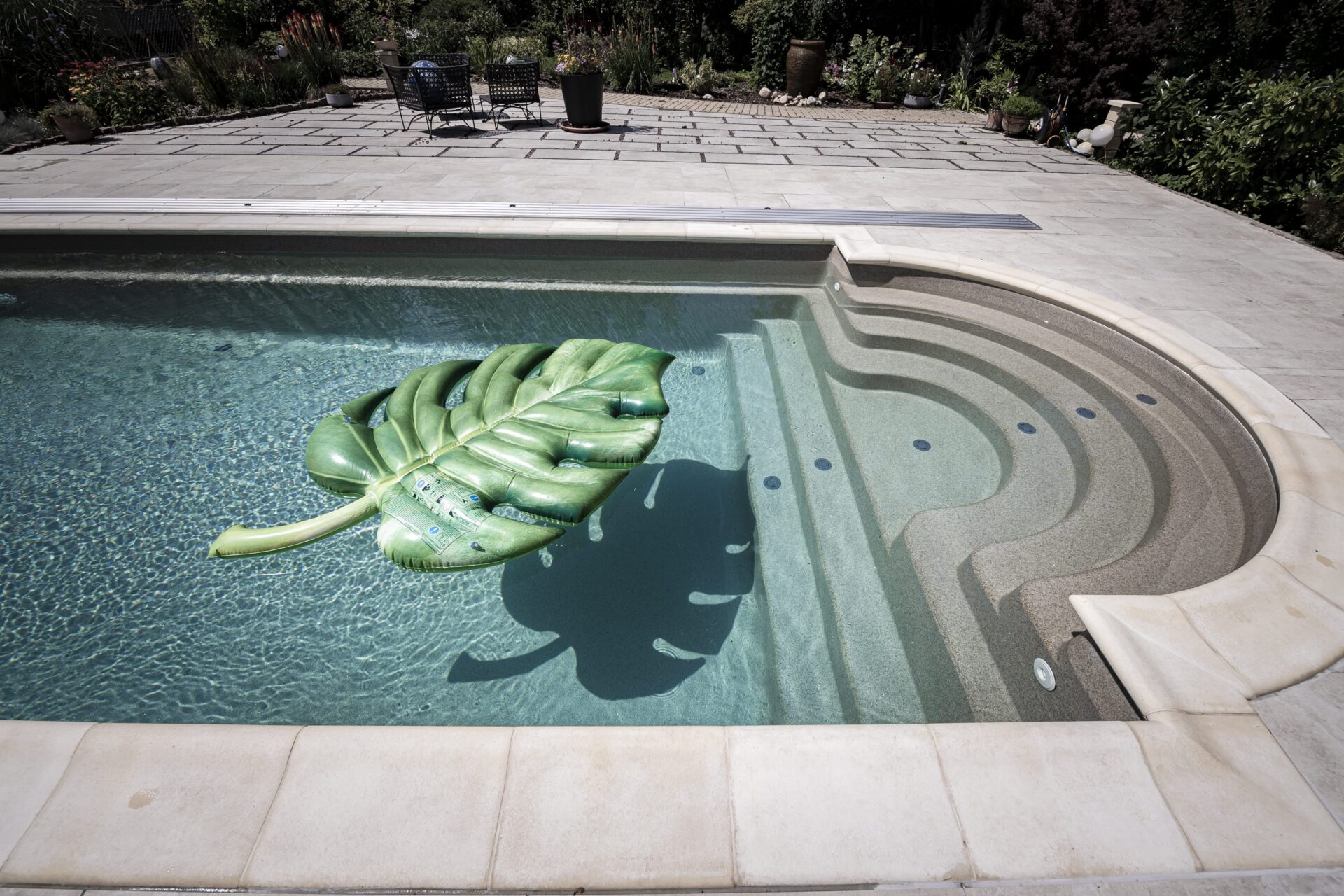 - A lépcsők, a padok és a medencefenék is a COMPASS védjegye alatt álló SLIP STOP csúszásmentes bevonattal rendelkeznek